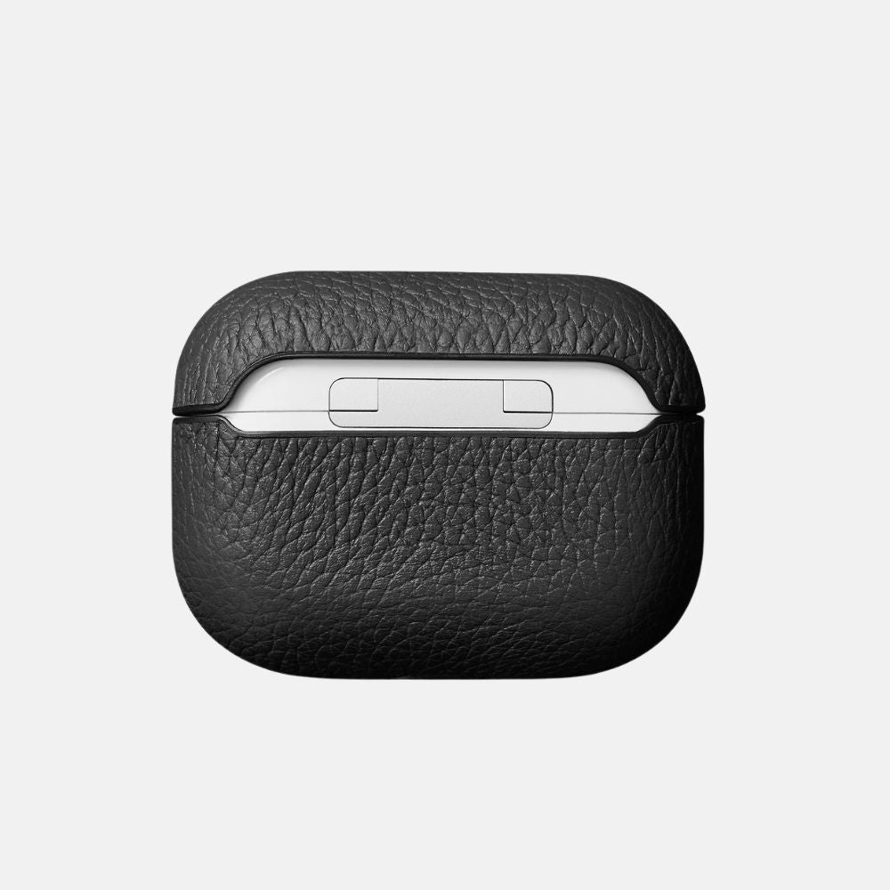 We designed our AirPods Pro case as a two-piece construction in order to avoid excessive hinges and bulk on the case exterior. The body of the case is partly lined with a protective microfiber, while the lid of the case has small stickers attached for a secure fit.